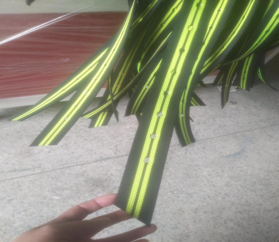 4. 織帶沖孔剪切一次性完成:超聲切帶沖孔,自動封口,絕無毛邊,不發(fā)黑,不發(fā)臭,平滑圓整,不散邊。