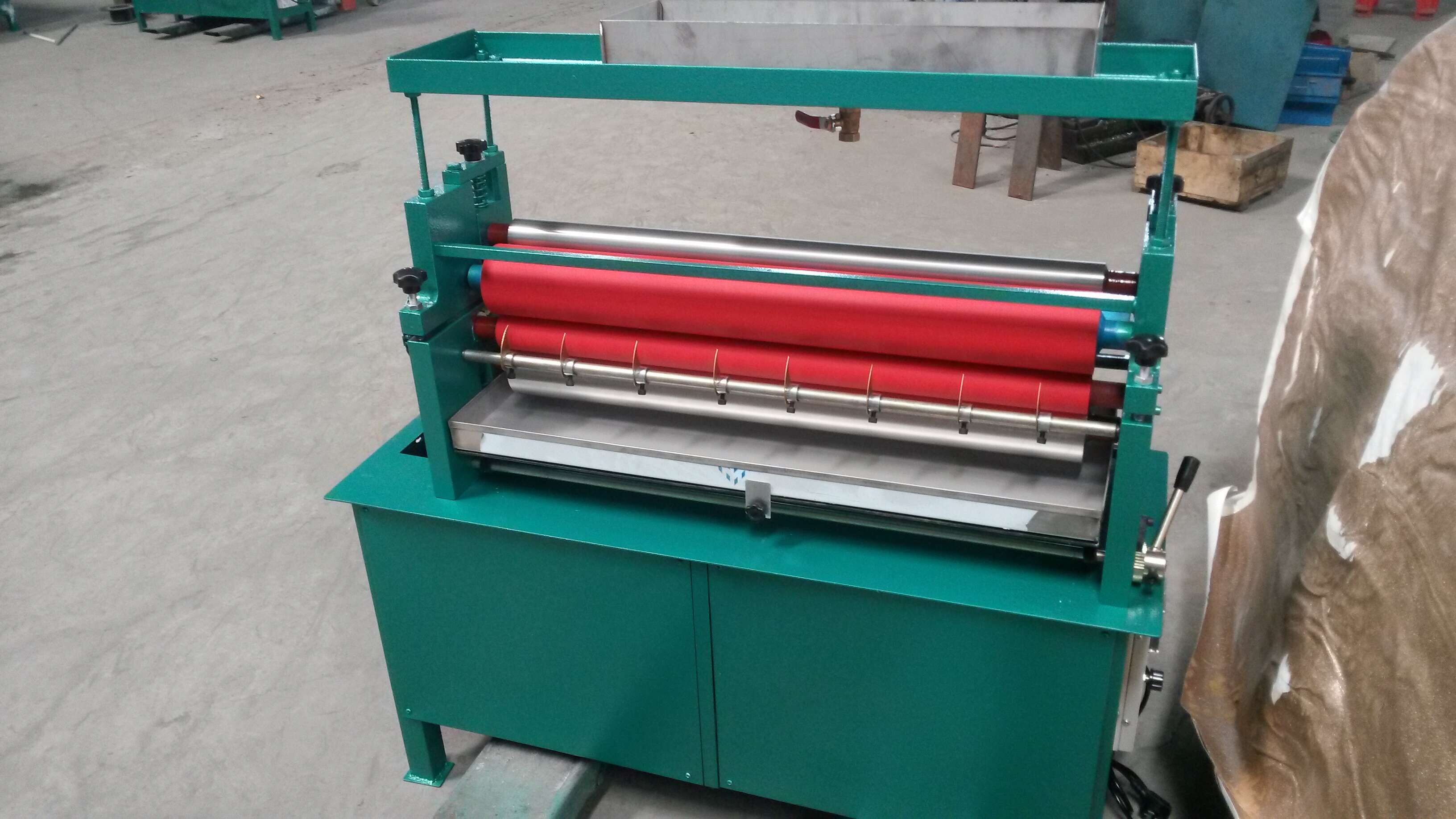 簡介:上面上膠機主要用于皮件、塑膠、泡棉、紙箱行業上的紙板、裱紙、鞋面及各種軟性材質上面上膠。該機結構緊湊、制作精密、設計新穎、易腐蝕部份全采用不銹鋼,調節簡便,適用于各種不同厚度的材料。